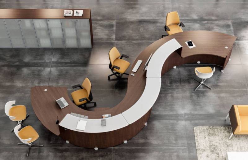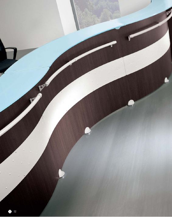 Coventry, vente de mobilier de bureau sur Bordeaux, propose Accueil RECEPTION GLASS. Accueillir et coordonner. Lignes courbes, linéaires, détail pour un projet de design pour toutes les nécessités de la société et de l'espace. Panneaux courbes et plateaux de travail pour accueillir et rendre l'île de travail autonomique. Grandes possibilités de composition grâce au modules PMR. Les belles courbes donnent un niveau d'accueil particulier et les profils en alu brillant donnent une belle harmonie. Style et élégance dans un parfait équilibre pratique pour toutes opérations de travail. Les collections issues des fabrications Quadrifoglio bénéficient des certifications PEFC, NF et OEC, et sont conformes aux normes Italiennes environnementales en vigueur.