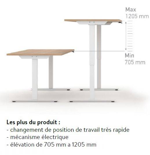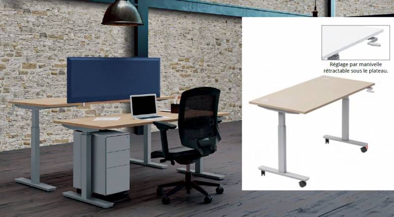 Les nouveaux modes de travail demandent plus de flexibilité, d'interactivité et génèrent une diversité de taches et de fonctions. Afin de préserver le bien-être et la santé des collaborateurs les bureaux doivent s'adapter aux besoins de chacun en proposant des solutions modulables et personnalisables. Les bureaux réglables en hauteur électriques ou à manivelle permettent d'adapter la hauteur en fonction des morphologies et d'alterner les postures assis-debout selon les activités. En parallèle de l’aspect environnemental lié au rallongement de la durée de vie des produits, ce critère est aussi un avantage pour le client final qui, en choisissant des produits conçus de façon à pouvoir remplacer les pièces détachées défectueuses, rationalisera de fait son investissement de départ. certifications PEFC, NF et OEC, et sont conformes aux normes françaises environnementales en vigueur. MADE IN FRANCE