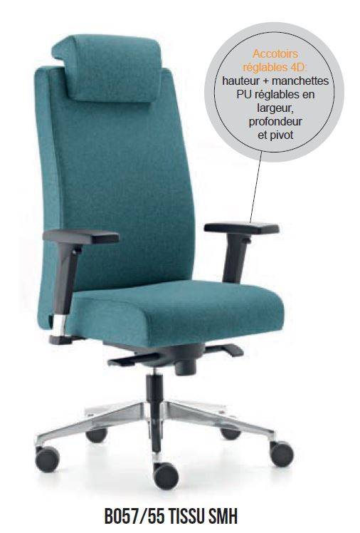 Coventry spécialiste du mobilier de bureau sur Bordeaux vous propose le fauteuil direction BOST Le Fauteuil BOST lancée en 2017 existe en revêtement tissu ou cuir noir ou de couleur pour s'adapter à toutes vos exigences de confort, d'élégance et de couleur avec ou sans têtière. Il se propose avec accoudoir fixe en aluminium poli et manchette en cuir ou accoudoir réglable 4D. Le moelleux et la générosité des proportions de ce fauteuil garantissent un confort optimal dans toutes les positions de travail. Il est équipé d'un mécanisme synchrone avec blocage multipositions et réglage personnalisé de la tension. Fabricant spécialiste du siège de bureau certifié ISO 9001 et ISO 14001, respect de l'environnement selon les principes du développement Durable.