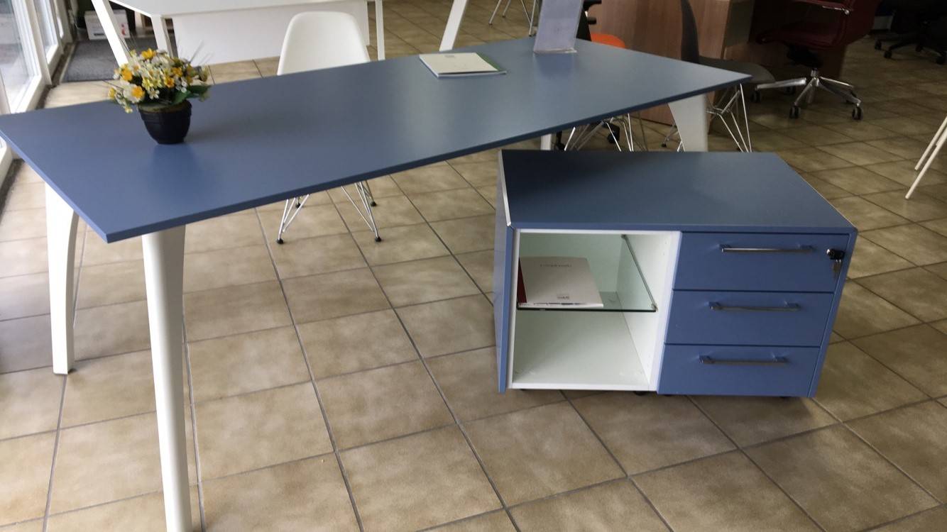 mobilier de bureau sur Bordeaux, vous propose le Bureau "ATTIVA" laqué bleu jeans avec sa desserte ...
