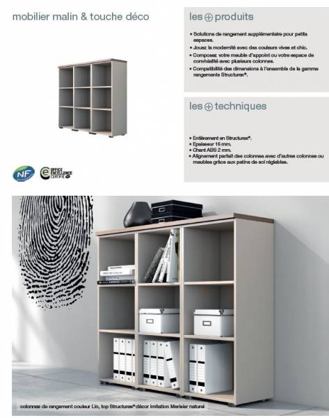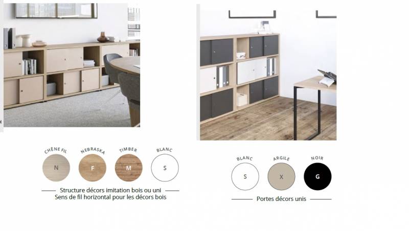 Nous vous proposons un tout nouveau système de rangement modulaire et évolutif. Cette gamme agrémentera vos espaces et vous apportera de la couleur et vous offrira un grand volume de rangement et classement, pratique et agréable à utilisé. Ces bibliothèques offrent des espaces de rangement de proximité alternatifs (ouvert et fermés), décoratifs et fonctionnels, d'un style contemporain. De finition soignée, associant des combinaisons bicolores, pratique à utiliser grâce à ses portes coulissantes, s'intégrant parfaitement au sein des espaces de travail formels ou informels. Structure en panneaux mélaminés ép. 25mm, séparation et fond en ép. de 16mm, champs ABS anti-choc de 2 mm. Porte coulissante ép.16mm équipées d'un bouton-poignée noir. Patin de réglage dia. 55mm H 2.5cm pour compenser les défauts de planéité du sol. Existe en bibliothèque de 2 niveaux, 3 niveaux ou 4 niveaux dim. prof 41.5 / 3 hauteur H81 - H119 -H157 / L 120cm. Niche ouverte dim. P41.5 /H 35.5 /L 35.5cm. Niche avec porte coulissante P34.5 /H35.5 /L77.5cm. Existe en banc mobile P41.5 /H50 /L120cm composé d'un module porte coulissante de 4 roulettes avec freins et d'un coussin d'assise en tissu chiné Step Mélange 100% Trevira CS non feu M1. MADE IN FRANCE