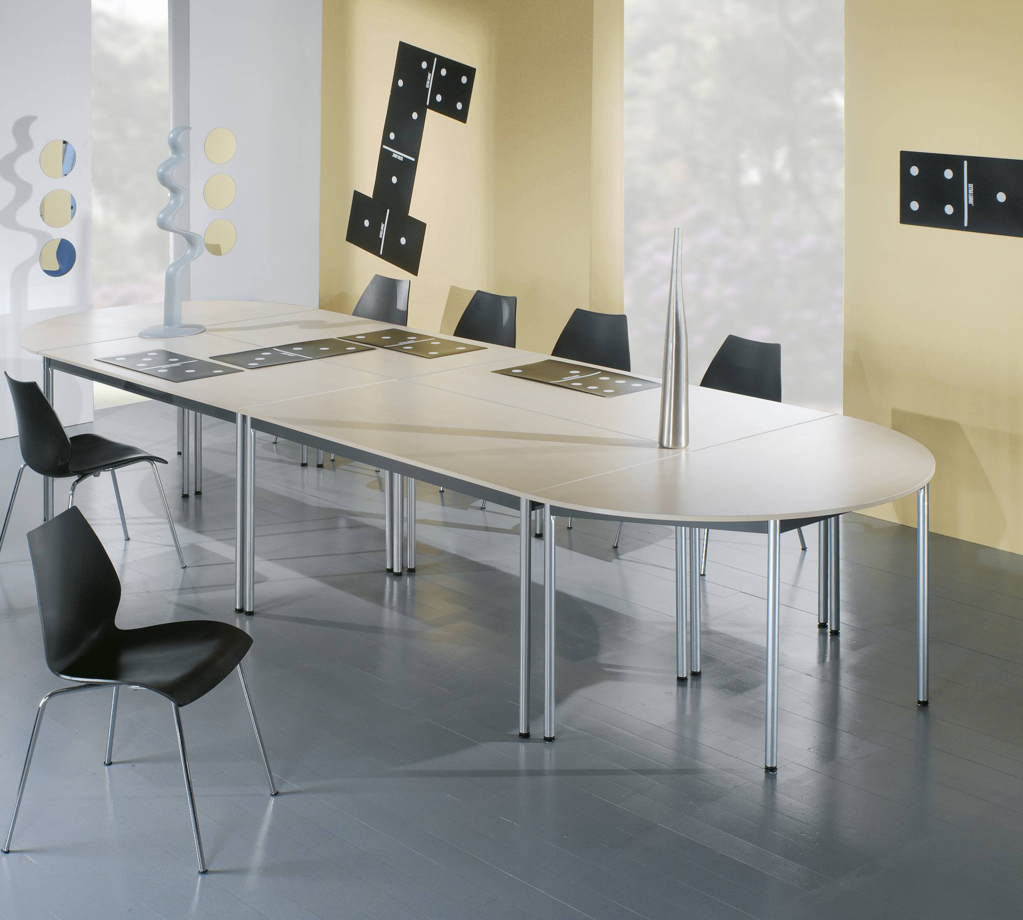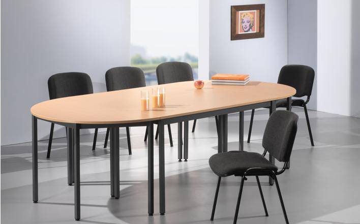 Mobilier de bureau sur Bordeaux propose les tables de réunions. Rectangulaire, demi-lune, pour toute configuration de salle de réunion. Les tables polyvalentes Rencontre offrent par leurs formes modulaires de nombreuses combinaisons d’aménagements de salles de réunion ou d’espaces de travail. Faciles à mettre en place, les tables Rencontre permettent de créer des espaces de travail permanents ou d’appoints à moindre coût. Plateau mélaminé ép.25 mm chants ABS anti-choc 2mm cadre métallique et piétement métal carrée 30x30. Vérins réglables de course 10 mm pour corriger les défauts du sol et proposer un alignement parfait entre les tables. Les collections issues des fabrications Buronomic bénéficient des certifications PEFC, NF et OEC, et sont conformes aux normes françaises environnementales en vigueur. En parallèle de l’aspect environnemental lié au rallongement de la durée de vie des produits, ce critère est aussi un avantage pour le client final qui, en choisissant des produits conçus de façon à pouvoir remplacer les pièces détachées défectueuses, rationalisera de fait son investissement de départ