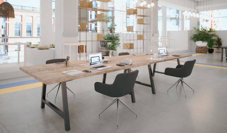 Coventry spécialiste de la vente de mobilier de bureau sur Bordeaux propose bureau et table piétement trapèze. Revendeur de mobilier de bureau sur eysines propose bureau et table piétement trapèze. la table COHESION se distingue par son design moderne et épuré. Elle offre un large plan de travail spacieux, favorisant le dialogue et la communication. Cette table répond aux nouvelles méthodes et environnements de travail du type coworking, favorables à l'échange et à la créativité, en permettant à plusieurs personnes de travailler sur le même plan de travail et le même projet. Plan de travail NITECH en épaisseur de 38mm, option de bloc électrique encastrable pour une connexion facilitée. Piétement arche trapèze dans un style industriel et avec un effet de métal BRUT. Les collections issues des fabrications Buronomic bénéficient des certifications PEFC, NF et OEC, et sont conformes aux normes françaises environnementales en vigueur. MADE IN FRANCE