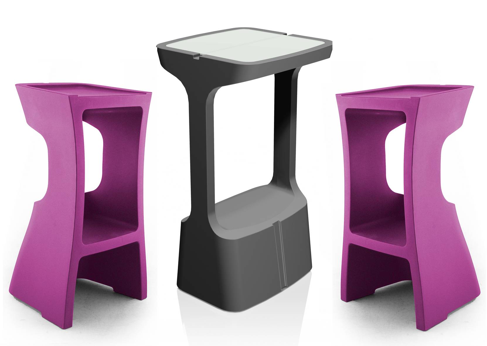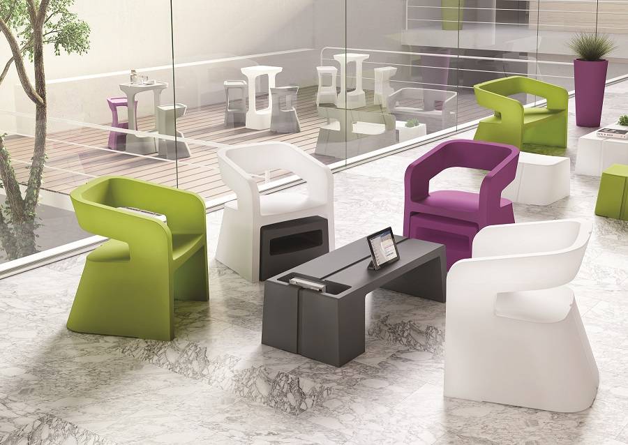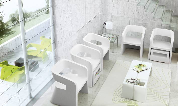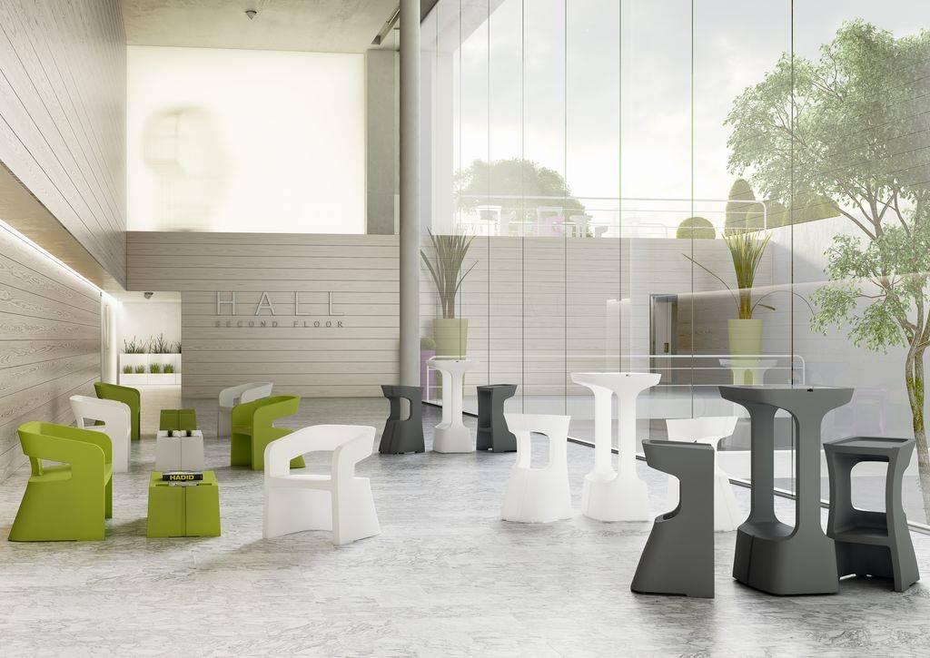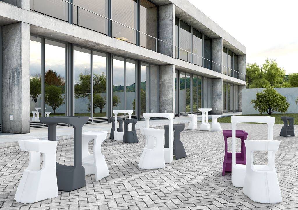 Une gamme de mobilier d'accueil en rotomoulage polyéthylène 100% recyclable traité anti UV et très facile d’entretien; au design minimaliste et aux dimensions généreuses, conçues pour tous type de zonz d'accueil et de détente. Composée de chauffeuse, banquette 2 places, pouf et table basse auxquels s'ajoute les derniers nés de la gamme, le tabouret de bar et son mange-debout. Ce programme est à la fois élégant et ludique et a été primé par un Label Observateur du Design 2013. Il s'adapte bien en extérieur. Option plateau verre pour table haute. Fabricant spécialiste du siège de bureau certifié ISO 9001 et ISO 14001, respect de l'environnement selon les principes du développement Durable.