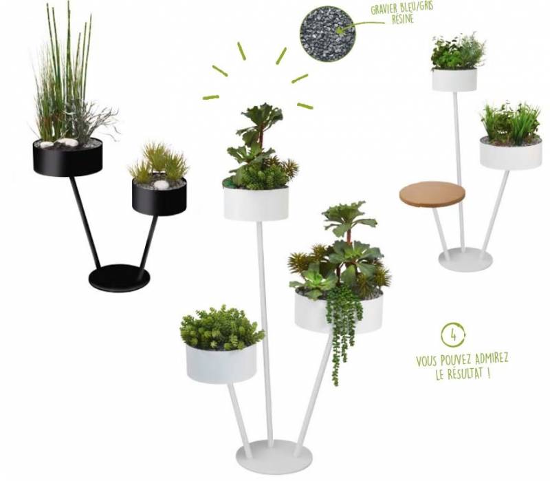 Coventry spécialiste de la vente de mobilier de bureau sur Bordeaux propose les cadres végétaux, arbre végétal, jardinière en bois ou métal, pots ronds ou carré etc... Les jardinières hautes sont très appréciées de nos clients pour isoler les espaces calmes des circulations. Elles permettent également de réunir ou de séparer les différentes équipes au sein d'un open space. Apportez une touche de chaleur à vos espaces, l'association du bois et du végétal apportera du style à vos espaces. Gamme tendance et esthétique composition artificielles ou semi-naturelles de qualité. Revêtu de cailloux gris / bleu résiné. Dans les pots ou bacs remplissage par copeaux bois naturel. Les jardin de Babylone ont inspiré cette gamme constitué d'une structure tubulaire de 2 ou 3 branches sur laquelle repose soit des bacs à plantes ou des tablettes métal ou bois massif. Babylone se décline en 3 thèmes florales.
