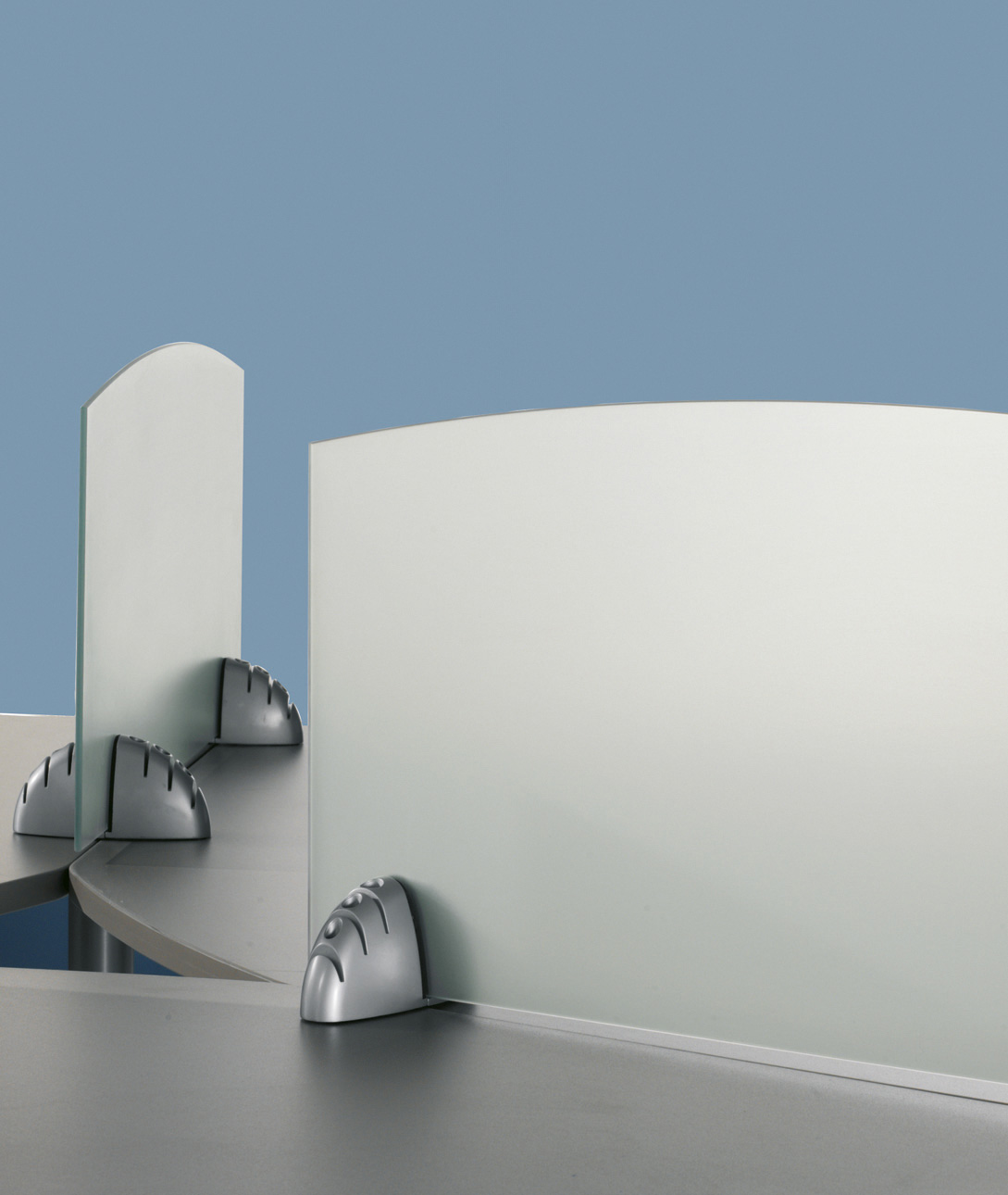 Coventry, specialiste dans la vente de mobilier pour bureau, à Bordeaux propose les Separateurs fixes ou amovibles droits ou galbes en melamine bois ou en couleur. Verre depoli ou plexi translucide blanc, sur support alu ou posé sur 2 sabots.