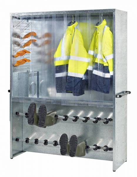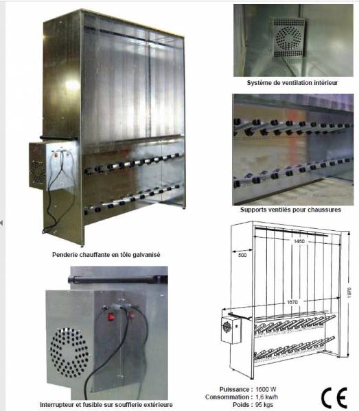 d'un systeme de ventilation d'air chaud. Il permet de sécher simultanément vêtements de travail, paires de chaussures, bottes ou gants en option pour 10 personnes.Le PENCHAUD10 est un produit qui peut venir compléter l'offre de vestiaires standards sur des installations existantes