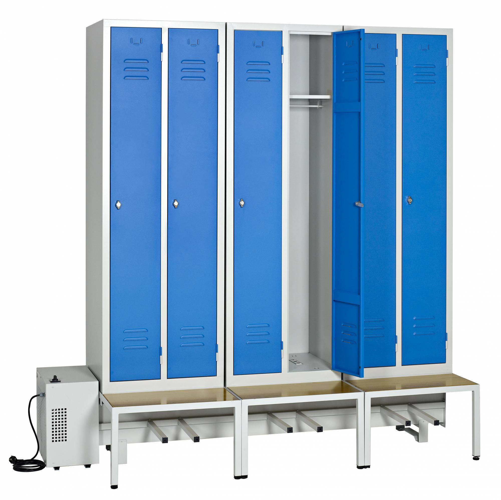 Le VESTVENTIL est un ensemble de vestiaires individuels muni d'un système de ventilation d'air ambiant intégré sous l'assise. Ce nouveau système permet de sécher rapidement les vêtements à l’intérieur du vestiaire ainsi que les chaussures de travail sur un support extérieurs, sous le socle banc. Existe en deux versions STANDARD propose 1 case individuelle de 40 cm en industrie salissante pour 4,6,8,10 ou 12 personnes. LE CONFORT propose 2 cases individuelles pour 2 à 9 personnes. Plus de vêtements humides pour les services techniques communaux ou travaux public. Vestiaires monobloc soudés fermeture 1 point par moraillon débrayable. En option un système de traitement des odeurs et des bactéries peut être installé. mobilier de bureau et vestiaire propose les vestiaires séchants.